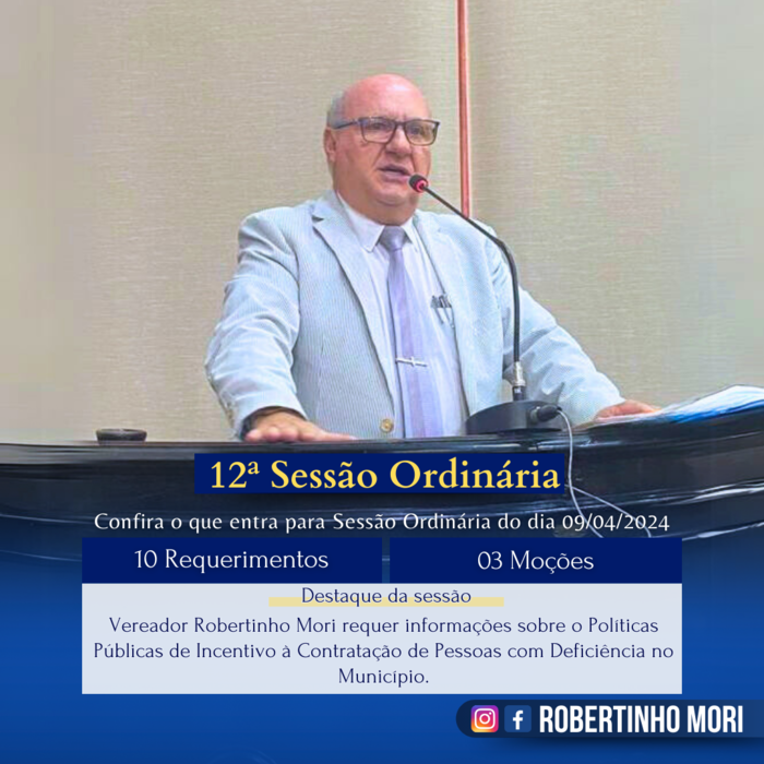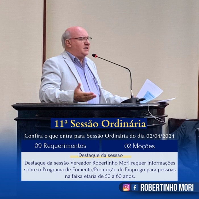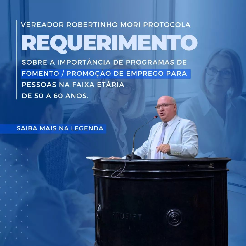 Na última sessão da Câmara Municipal, o vereador Robertinho Mori apresentou um requerimento solicitando a implementação de programas de fomento e promoção de emprego destinados às pessoas na faixa etária de 50 a 60 anos. A proposta visa incentivar a inclusão desses profissionais no mercado de trabalho que enfrenta dificuldades significativas para se reinserir no mercado de trabalho.