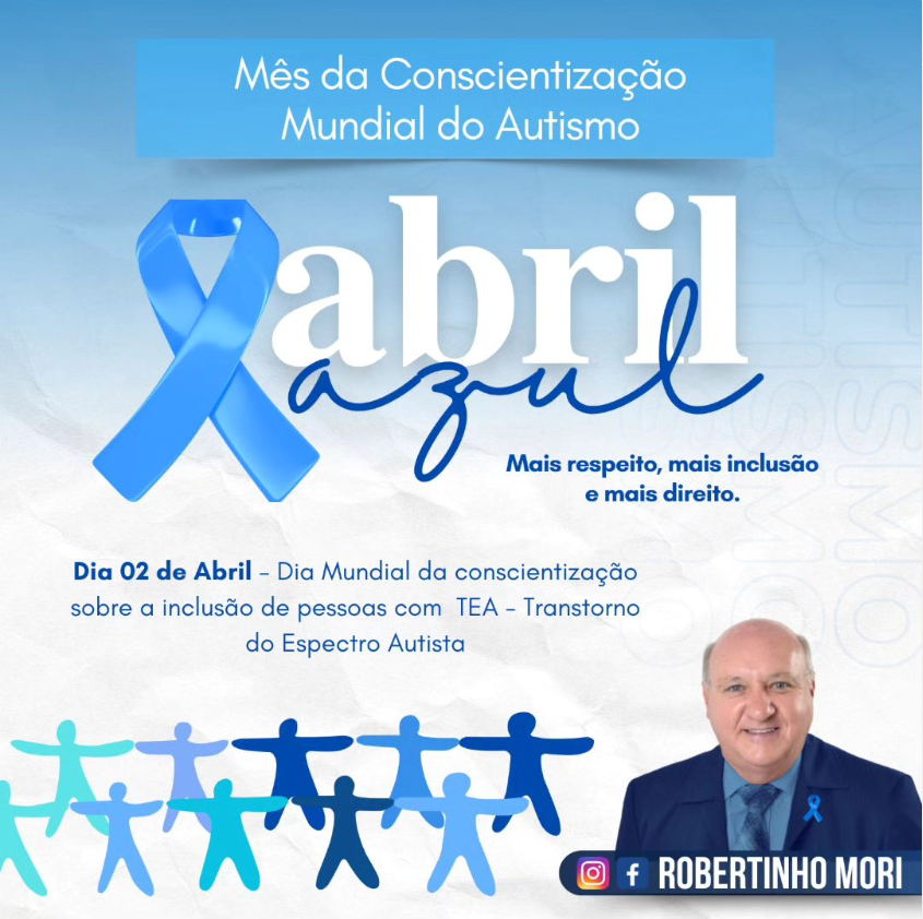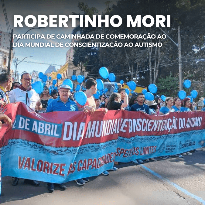 No dia 06 de abril o Vereador Robertinho Mori participou das comemorações do Dia Mundial de Conscientização ao Autismo envolvendo uma caminhada entre a Praça Coronel Salles até a Praça Maria Aparecida Resitano onde houve a concentração polupar, a presenças de Entidades Apoiadoras com diversas apresentação como a presença da Banda APAE (regida por Robertinho Mori). Além disso, serviços para difundir informações para a população sobre o autismo e reduzir a discriminação e o preconceito com atividades lúdicas para celebrar esse momento.