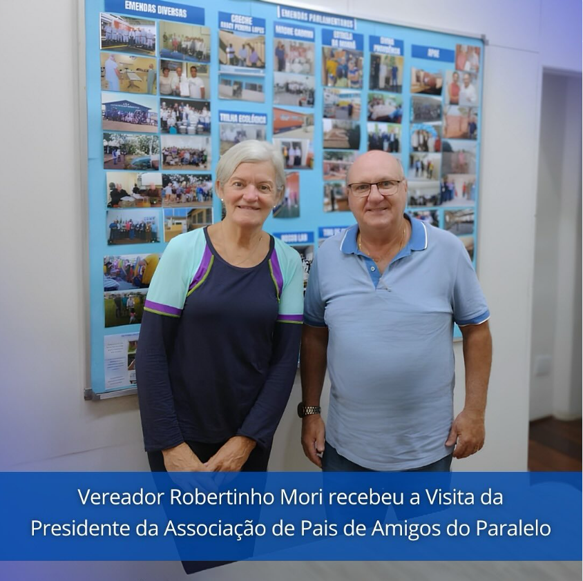 Na manhã de hoje, o Vereador Robertinho Mori, recebeu em seu gabinete a Presidente da Associação de Pais e Amigos do Paralelo – Elizabethe de Silva