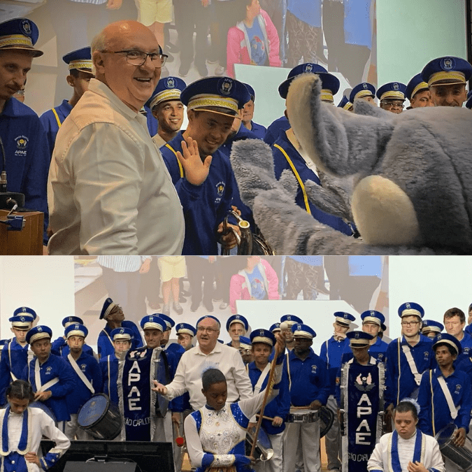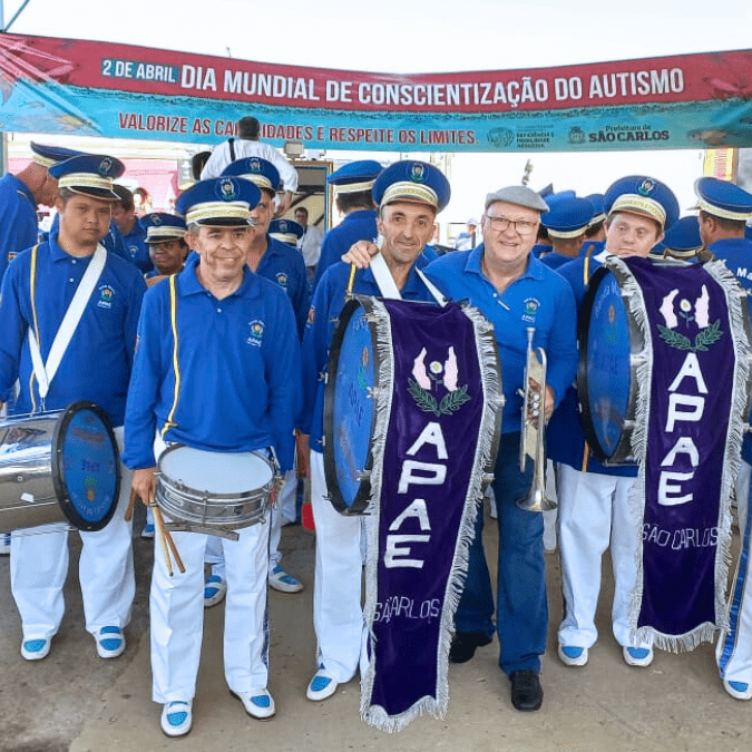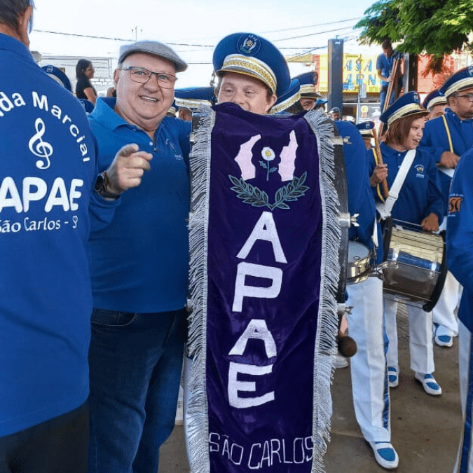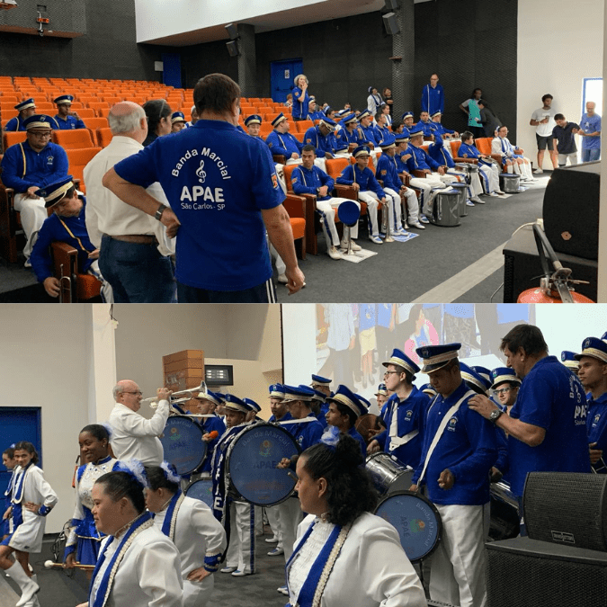 Hoje (25/03) a Banda Marcial da APAE – São Carlos brilhou na USP – São Carlos durante o evento CAIS – 2024 Integração Ação Doce Ciência.