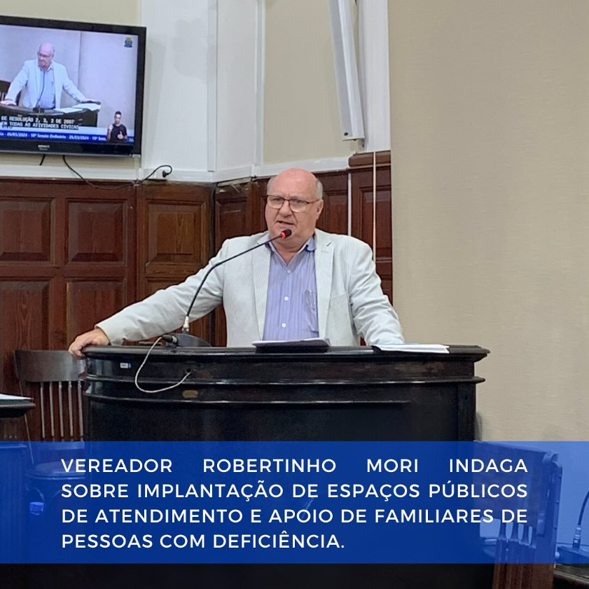 Preocupado com o número de diagnóstico elevado de pessoas com pessoas com deficiência, Autismo, Deficiências Ocultas entre outras no município, Vereador Robertinho Mori protocolou requerimento indagando sobre a importância de garantir a disponibilidade de espaços dedicados ao atendimento e apoio dos familiares de pessoas com deficiência, dada a elevada quantidade de PCD, principalmente após a conclusão do diagnóstico.