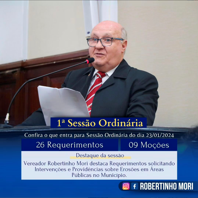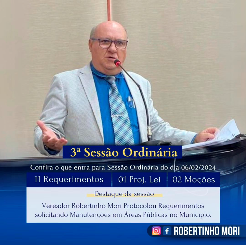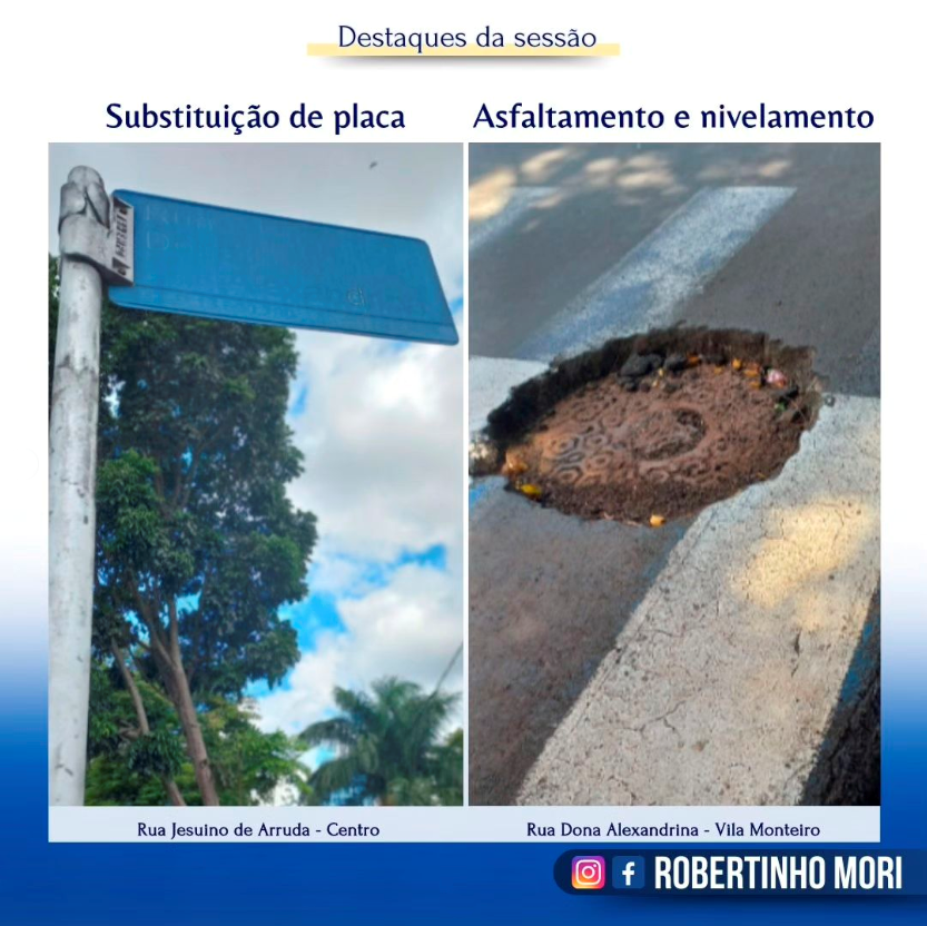 Destaque da Sessão: Vereador Robertinho Mori Protocolou Requerimentos solicitando Manutenções em Áreas Públicas no Município.