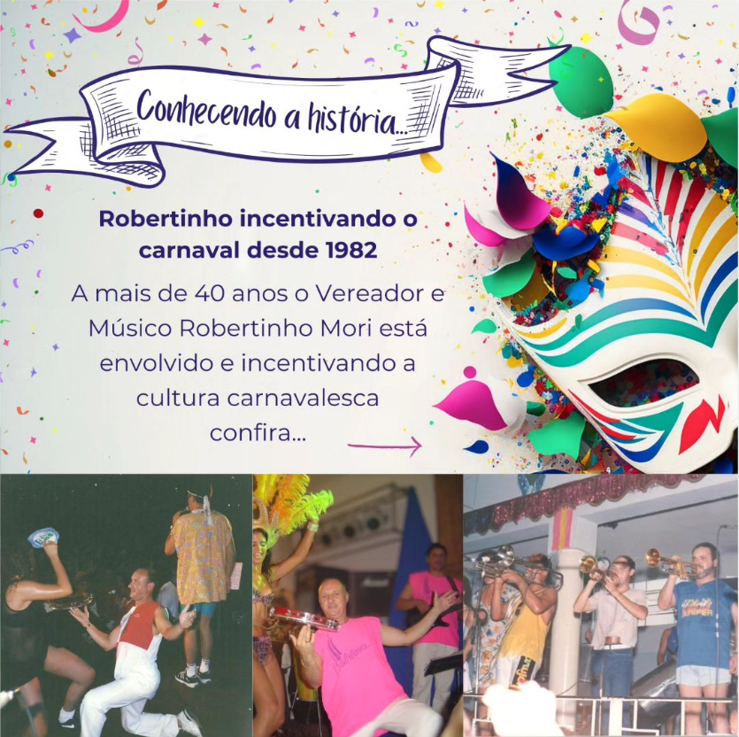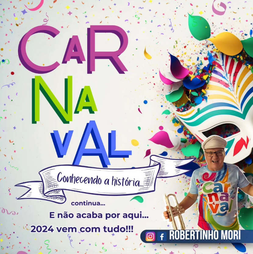 Antes de curtir a folia, confetes e fantasias, vamos conhecer um pouco mais da história do carnaval e os mais de 40 anos de participação do Robertinho Mori nesta data tão animada!!