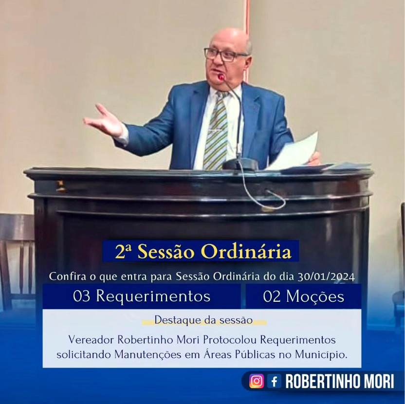 Destaque da sessão: Vereador Robertinho Mori protocolou requerimentos solicitando manutenções de áreas públicas.