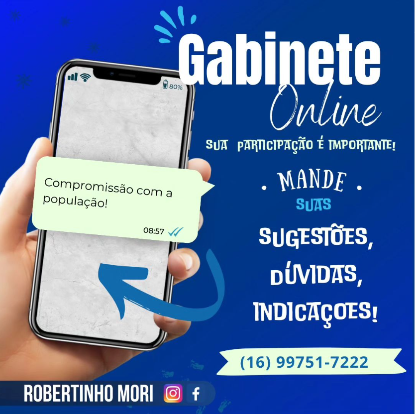 Nosso gabinete está a um clique de distância. Mande suas dúvidas, sugestões ou indicações. Sua participação é importante!