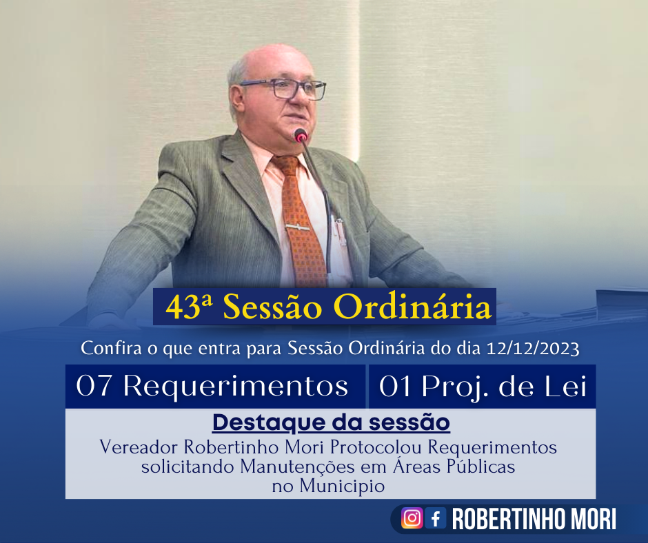 Destaque da sessão: Vereador Robertinho Mori protocolou requerimentos solicitando manutenções em áreas públicas no município.