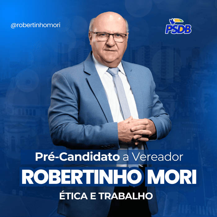 ➡️ Sou Vereador Robertinho Mori, sou Pré-Candidato pelo PSDB, sou casado a 33 anos, tenho 61 anos de idade.